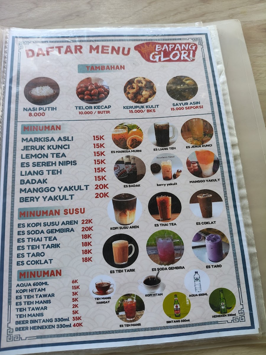 The various dishes on the menu highlight the restaurant's commitment to quality and taste. From the moment you take your first bite of their famous Kwetiau, which boasts perfectly cooked noodles enveloped in a smoky, savory sauce, you'll realize that Bapang Glori has something truly special to offer. Diners rave about the generous servings of tender pork that accompany the kwetiau, along with fresh, crisp vegetables that add texture and flavor.